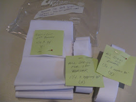 The instructions say to cut the borders out first. One of the reasons I am so thrilled to be sewing next to Jan is because she is Miss Organized. She had labeled all of the border cuts and and placed them in a zip lock bag.